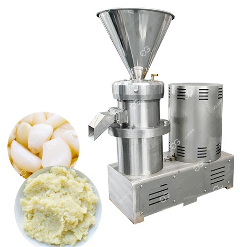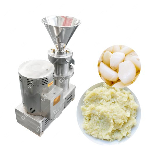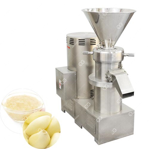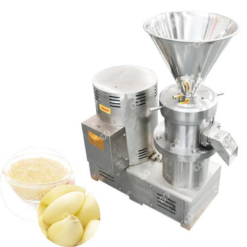 تتكون آلة صنع عجينة الثوم من مطحنة غروانية يتم تشغيلها بواسطة محرك كهربائي ، والذي يقود سنًا دوارًا وسنًا ثابتًا مطابقًا. توجد فجوة صغيرة قابلة للتعديل بين جسمي المطحنة. عندما تمر المادة عبر هذه الفجوة ، نظرًا للدوران عالي السرعة للسن الدوار ، فإن سرعة المادة الملحقة بسطح السن الدوارة يتم تعظيمها ، بينما تكون سرعة المادة المتصلة بالسن الثابت صفرًا. تنتج آلة صنع عجينة الثوم هذه تدرج سرعة حاد ، بحيث تتعرض المادة لتأثيرات فيزيائية مثل القص القوي ، والاحتكاك ، والاهتزاز عالي التردد ، والدوامة عالية السرعة. يتم استحلاب المادة بشكل فعال ، وتشتيتها ، وتجانسها ، وسحقها لتحقيق تأثير التكسير الدقيق للغاية واستحلاب المواد.